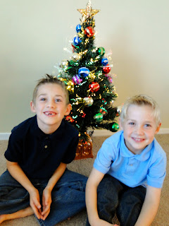 Our yearly tradition of pictures by the little tree. We were heart broken when we went to get all the Christmas stuff out to realize we did not have all our Christmas ornaments. the big train that goes around the tree, or the mini light up tree we got the first Christmas Peter and I were married (the one I had planned to take pictures of the boys in front of their whole lives). We even sent uncle Joe over to our old house in San Antonio to ask the people who bought the house if they had seen that stuff in the attic. But no luck. All those memories had dissapeared--even ornaments from my and the boys first Christmas's.